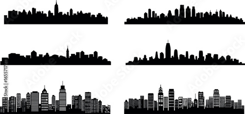 Obraz premium Collection of diverse city skyline silhouettes featuring modern and classic...