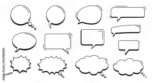 Fototapeta premium Collection of Diverse Comic Speech Bubbles and Thought Bubbles for Design Projects
