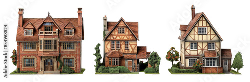 © pawimon, Fototapeta premium Collection of Diverse Luxury Properties - Beachside Villa, Colonial Mansion, Eco-Friendly House | Real Estate Concepts on White Background