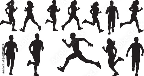 © Mehedi, Naklejka premium Collection of diverse runner silhouettes in motion isolated on transparent background