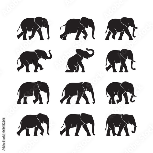Obraz premium Collection of diverse silhouette poses of elephants in various movements and...
