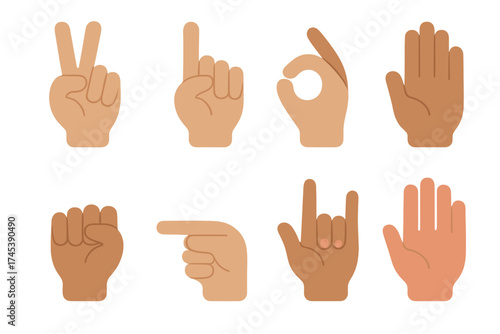 © Mark, Fototapeta premium Collection of diverse skin tone hands showing various common gestures and signs