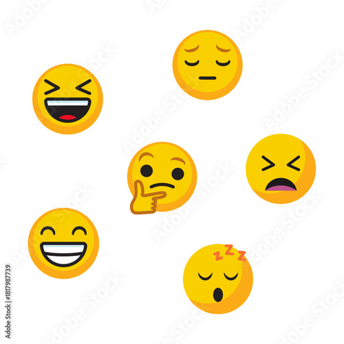 © Joy, Fototapeta premium Collection of diverse yellow emoji faces expressing different emotions on a white background