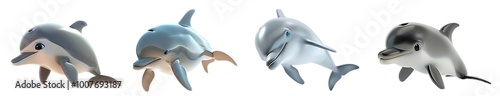 Fototapeta premium Collection of dolphins in different swimming postures isolated on transparent background