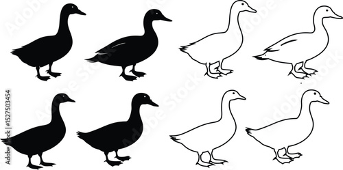 © MuhammadSaqlain, Fototapeta premium Collection of duck icons, silhouettes and outlines, vector isolated