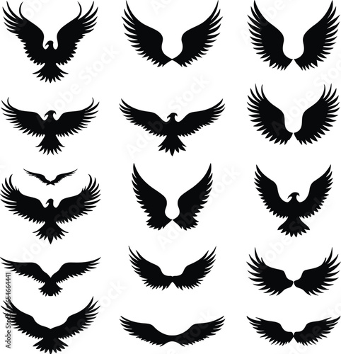 Obraz premium Collection of eagle silhouettes wings spread soaring