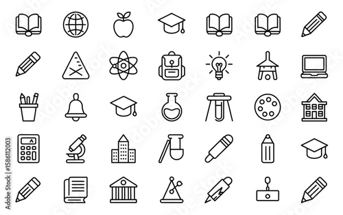 © Vision by Alamin, Naklejka premium Collection of Educational Icons Representing a Wide Range of Subjects, School Events, and Classroom Tools for Effective Use in Teaching Materials and Academic Projects