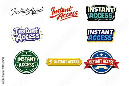 Obraz premium Collection of eight instant access logos with diverse typography and design styles
