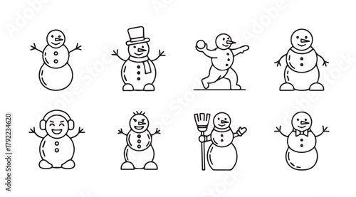 Obraz premium Collection of eight playful snowman illustrations in a distinctive silhouette...