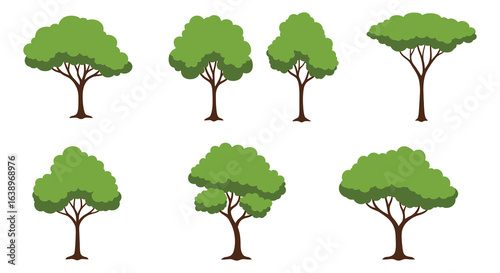 © Siam Studio, Fototapeta premium Collection of Eight Simple Green Trees Illustrations