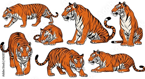 Obraz premium Collection of Eight Tigers in Various Poses, Illustrated