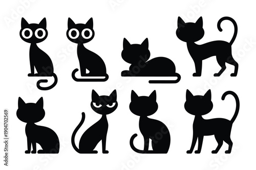 © Richol, Obraz premium Collection of eight vector black cat illustrations in various poses and styles