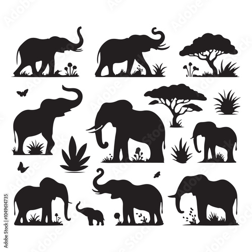 © GlambGarb, Fototapeta premium Collection of Elephant silhouette vector