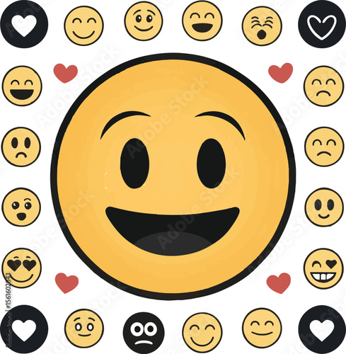 Fototapeta premium Collection of emoji illustrations featuring happy smiles hearts and various emotional expressions