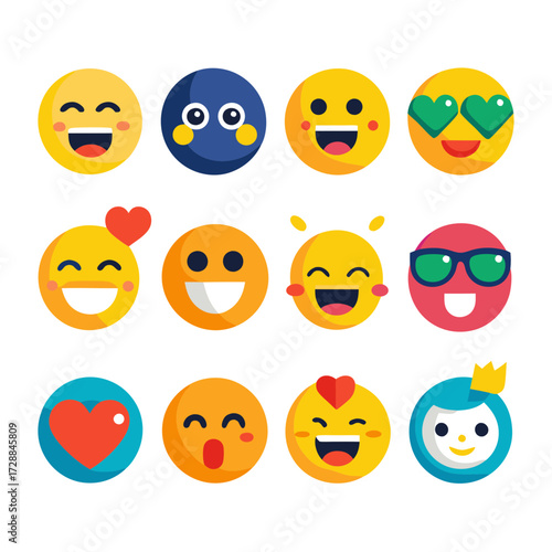© Wahid Xihan, Fototapeta premium Collection of emoticon faces in vibrant flat design style