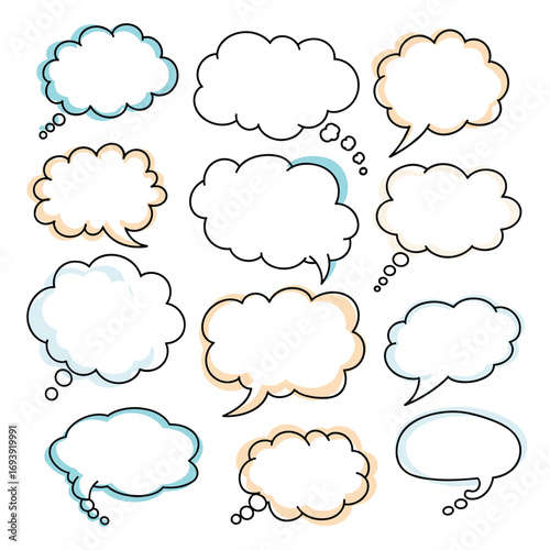 Obraz premium Collection of empty speech bubbles and thought clouds for communication ideas