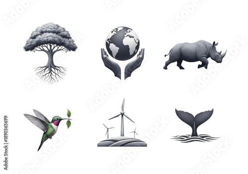 © review stocker, Fototapeta premium Collection of Environmental and Wildlife Symbols.
