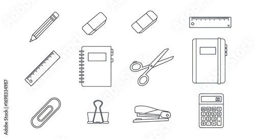 Obraz premium Collection of essential stationery items for drawing writing and organizing.