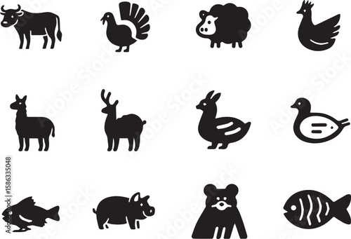 © Mehedi, Obraz premium Collection of farm and wild animal silhouettes isolated on transparent background