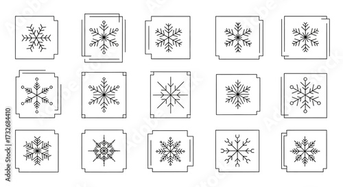 Fototapeta premium Collection of fifteen unique snowflake icons in a grid format.