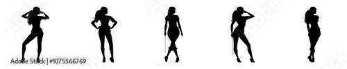 Fototapeta premium Collection of five fashionable women silhouettes, each standing elegantly...