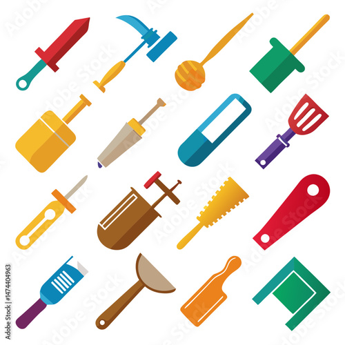 Obraz premium Collection of flat design cartoon tool icons on white