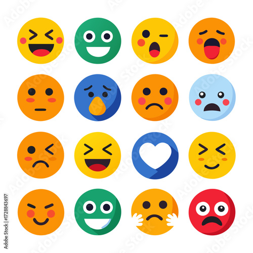 © Wahid Xihan, Fototapeta premium Collection of flat design emoji icons with various expressions