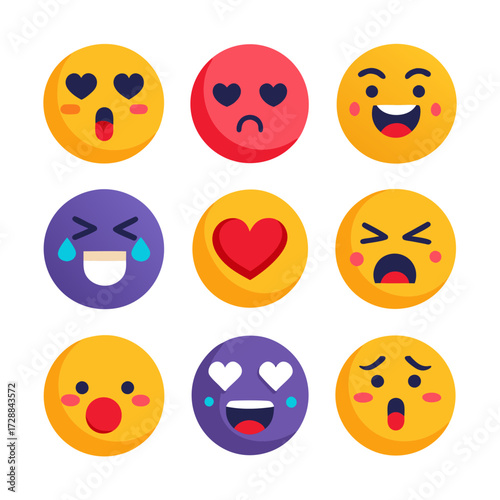 © Wahid Xihan, Obraz premium Collection of flat design vector emoji icons and expressions