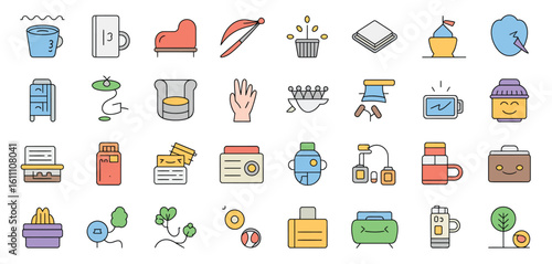 Fototapeta premium Collection of flat style icons representing various household and personal...