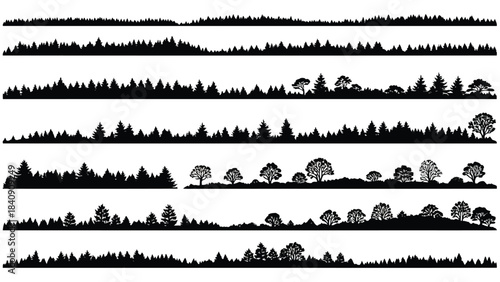 © Alam, Obraz premium Collection of forest and tree silhouettes on white background