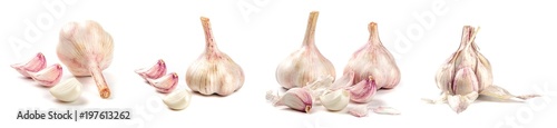 © Iurii, Obraz premium Collection of fresh garlic isolated on white