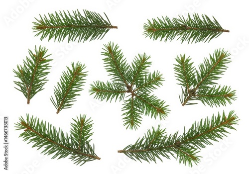 © stock.metket.com, Naklejka premium Collection of fresh green fir tree branches isolated on a white background
