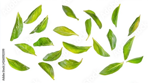 Fototapeta premium Collection of Fresh Green Leaves Isolated on a White Background for Natural...