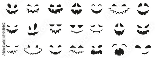 Naklejka premium Collection of funny and scary ghost or pumpkin faces for Halloween