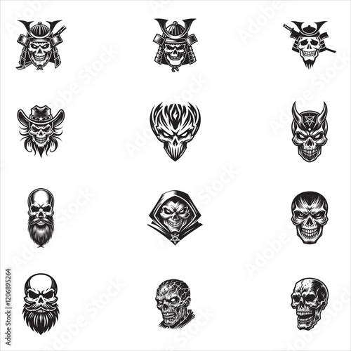 © Shineoxstock, Fototapeta premium Collection of Funny Skull Vector illustration, Creepy Skull silhouette Design