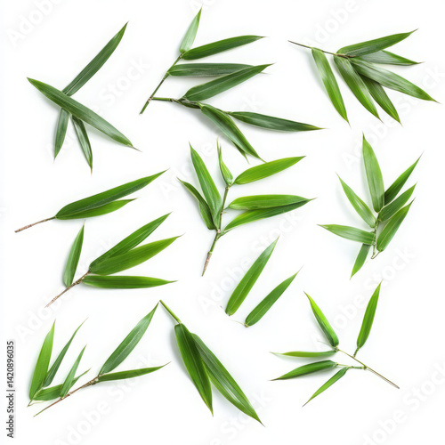 © Asim-Backgrounds, Obraz premium Collection of green bamboo leaves isolated on white background