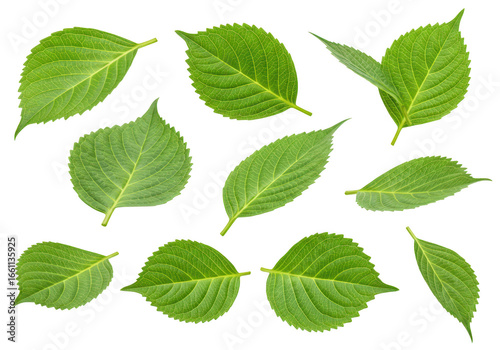 Obraz premium Collection of green hydrangea leaves isolated on transparent background