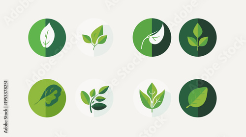© Mufarokah, Obraz premium Collection of green leaf icons in circular frames against a light background
