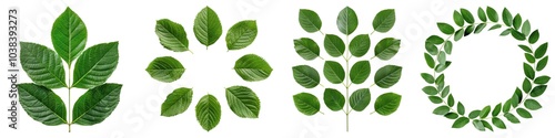 © Arnon Parnnao, Naklejka premium Collection of green leaves in various arrangements, isolated on a white background.