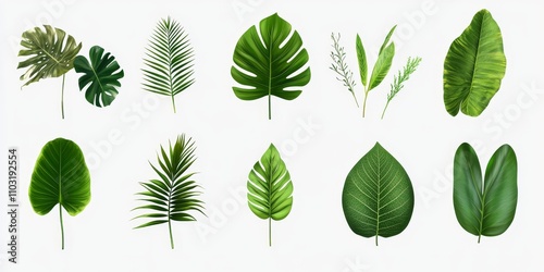 © ANZ studio, Obraz premium Collection of green leaves isolated on white background.