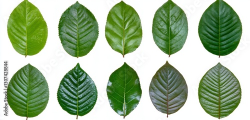 Obraz premium Collection of Green Leaves Isolated on White Background