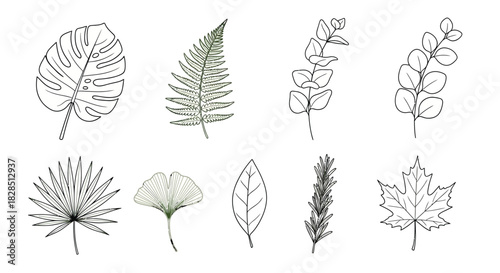 Fototapeta premium Collection of hand drawn botanical illustrations of various leaves