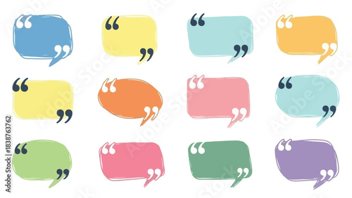 Obraz premium Collection of Hand-Drawn Colorful Speech Bubbles and Quote Boxes for Messaging