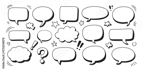 © SaymaHossan, Fototapeta premium Collection of hand drawn comic book speech bubbles and thought bubbles with stars and exclamation marks