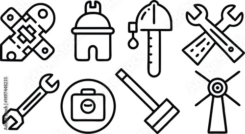 © Nazrul Kabir, Obraz premium Collection of Hand Drawn Construction and Repair Tools Icons