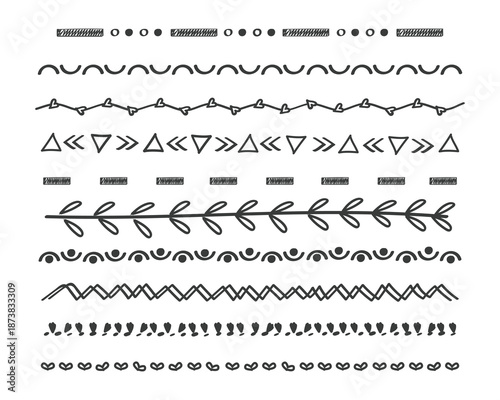 Fototapeta premium Collection of hand drawn doodle borders, various rustic scribble dividers for creative design projects