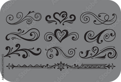 © Md, Naklejka premium Collection of hand drawn flourishes swirls and borders for design projects