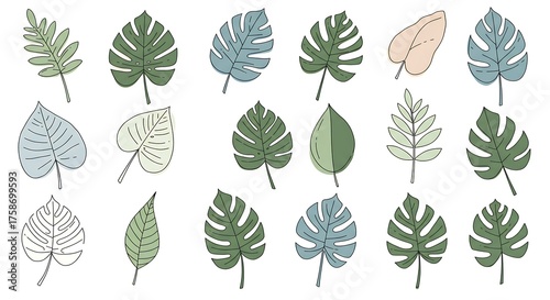 Fototapeta premium Collection of hand drawn leaf illustrations on white background