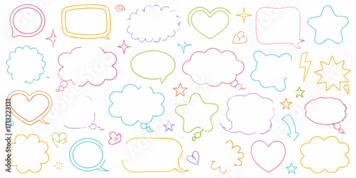 Fototapeta premium Collection of hand drawn speech bubbles and shapes in various pastel colors on white background