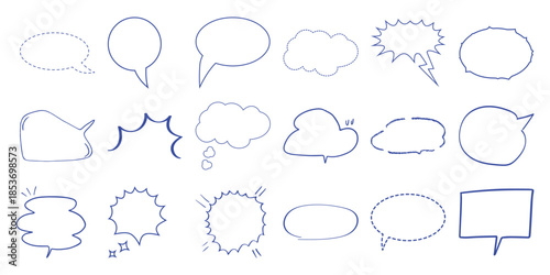 © Islam, Fototapeta premium Collection of Hand-Drawn Speech Bubbles and Thought Bubbles in Blue Outline
